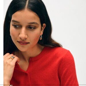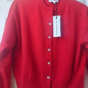 NEW White + Warren Cashmere Crewneck Rhinestone Cardigan Scarlet
