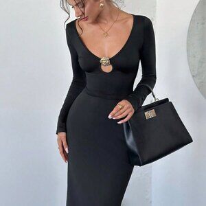 Black Elegant Women's Sexy Sleeveless Low-Cut Hollow Out Dress