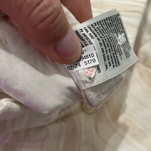DETAILS: American Eagle pants women's 2, vertical pinstripe in ivory and beige, wide leg, pockets, button hook/eye zip closure. Linen cotton viscose blend, machine wash.