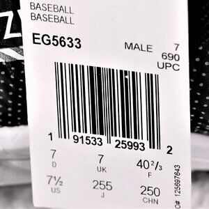 Adidas Afterburner 7 Baseball Cleats Black-White EG5633 SIZE 7.5 (NWT)