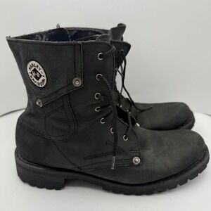 Harley Davidson Womens 10 Black Leather Lace Up Side Zip Motorcycle Boots Riding