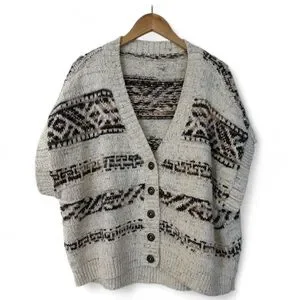 Cozy V-neck sweater with button front. Features a stylish pattern. Perfect for layering.