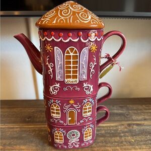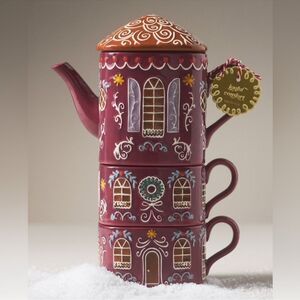NWT ANTHROPOLOGIE Gingerbread Ceramic Stoneware Tea For 2