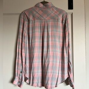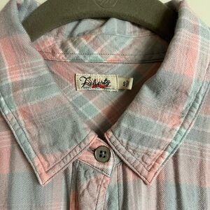 Faherty Women’s Malibu Shirt. Light blue and light pink plaid. Button down shirt. Super soft cotton. No stains, tears flaws. Great condition. Very comfortable. Size Small.