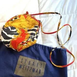 Stuart Weitzman RARE Round Crossbody Bag Silk Scarf Print Lion Zebra Vintage HTF