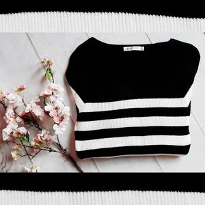 JUSTFAB Crewneck Black & White Striped Ribbed Knit Sweater Dress Size XL