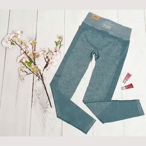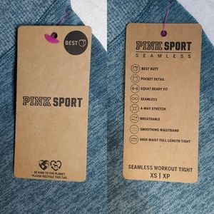 Pictured: Seamless workout tights by VS PINK! These are in a feathered teal color (actual name is Blue Marl). PINK calls them "best butt" and they are NOT wrong๐๐! 4-way stretch (seriously, these are crazy stretchy!) seamless material with interior back phone pocket and nice wide waistband for extra support! Brand new with tags.