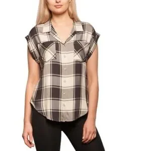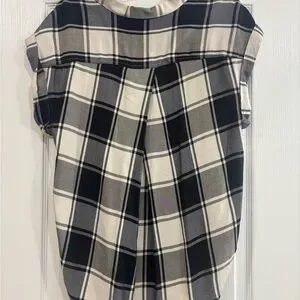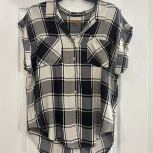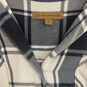 Jack’s Girlfriend Black and Ivory Plaid Button Up Cap Sleeve Casual Shirt, M