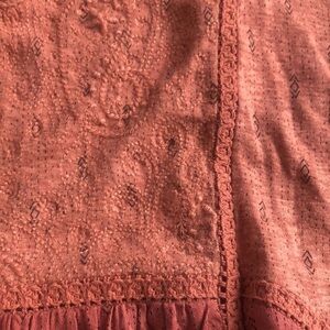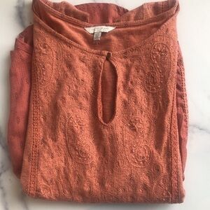 Lucky Brand Pink/Peach Flowy Embroidered Top, Size Large