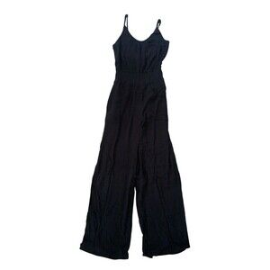 prAna Fernie Jumpsuit Womens XS Black Smocked Waist Crinkled Relaxed Wide Leg