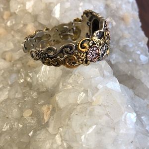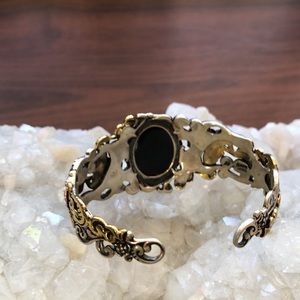 From my personal collection- never worn. Gorgeous Carolyn Pollack sterling silver, brass, & copper with black onyx cabochon center gemstone tri color setting. Super feminine floral design. Fits an average sized wrist. Comes with bag. Unique gift. Boho bohemian Casual Office appropriate. Floral Feminine Flower