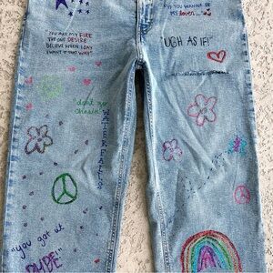 Wild Fable Jeans Size 12 Doodle 90s Relaxed Straight High Rise Y2K Rave Retro