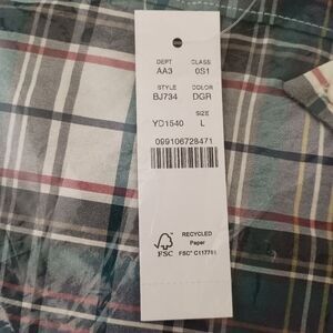 J.Crew Shirt Mens Large Plaid Classic Fit Short Sleeves Pocket BJ734 Cotton NWT