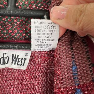 Vintage Studio West Boho Red Black Woven Colorful Tapestry Jacket Womens 3X