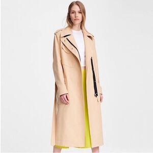Rag and Bone Ludlow Belted Collared Cotton Gabardine Trench Coat Beige Medium