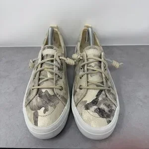 Sperry Women's Camouflage Metallic Leather Slip On Boat Shoes Top Sider Size 10