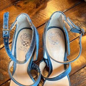 Chic blue velvet heels by Vince Camuto. Stylish and comfortable for any event.