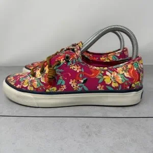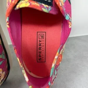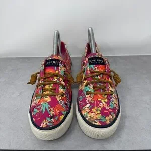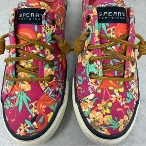 Sperry Women’s Tropical Floral & Flamingo Canvas Slip On Boat Shoes Size 7