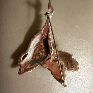 This exquisite Vintage Goose/Bird brooch features a graceful bird design adorned with lustrous Faux pearls and shimmering Rhinestone accents. I took pictures of the missing stones in the Bigger Wing & Tail (only 3 that I could see) Because the Silver Hides them. This Brooch is Very Nice and Elegant