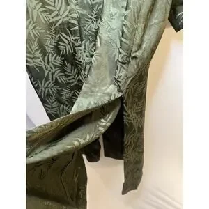 H&M Trend Khaki Green Silky Palm Leaf Print Kimono Long Jacket Sz M