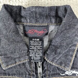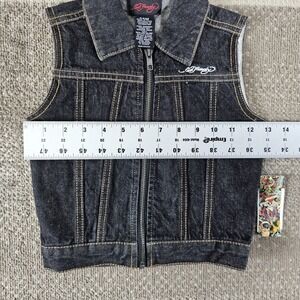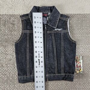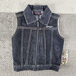 Ed Hardy Grunge Dog Skull Butterfly Black Denim Vest Boys Size 24 Months