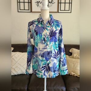 Denim & Co. Naturals Linen Blend Side Button Curved Hem Shirt Women's Size S
