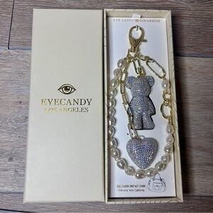 Rhinestone Glitter Teddy Bear & Heart Charm Keychain Set | EyeCandy Los Angeles