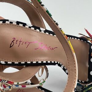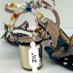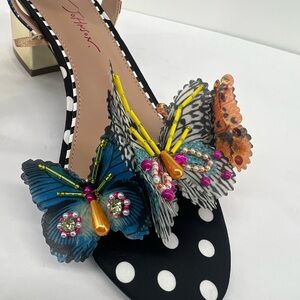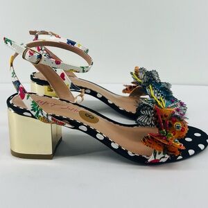 Betsey Johnson Black and Gold Heels with Floral and Butterfly Design