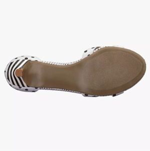 Chic white heels with playful black polka dots. Features colorful fruit accents. Perfect for a fun, stylish look.