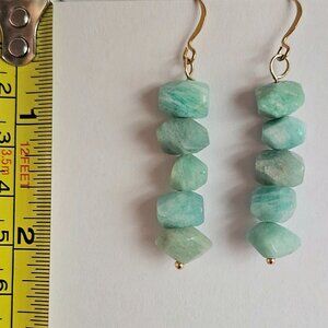 These Amazonite earrings are really pretty! The faceted beads are very good quality and color. They are 2" long x .5" wide.