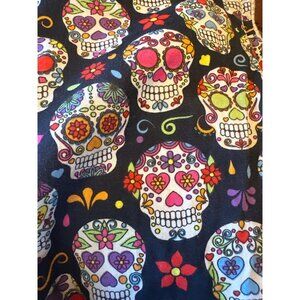 This canvas and leather tote bag offers a durable yet stylish design with unique sugar skull lining. Ideal for daily use or travel needs.