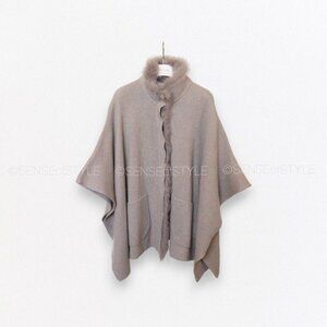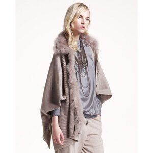 Brunello Cucinelli Women's Cashmere Poncho Cardigan Sweater Fur Brown size M
