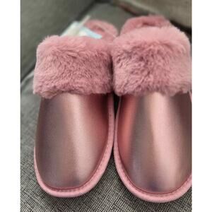 BRAND NEW WITH TAGS Girls Metallic Pink Faux Fur Slippers – Cozy Indoor Shoes