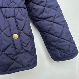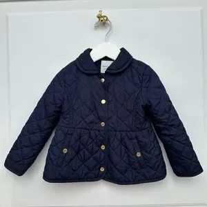 The quilted barn coat from Janie and Jack features an adorable peplum waist, bow detail on back, and gold-tone snaps.
