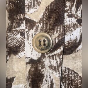 3/4 sleeves, brown, tan and white, linen blend blazer, size 18, casual.