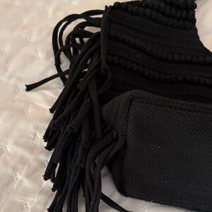 Stylish black women's bag with fringe detailing. Perfect for adding a chic touch to any outfit.