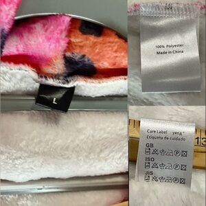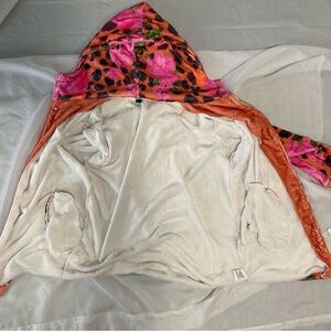 NWOT Autumn Fall Bright Pink Coat Rainbow Abstract Hood Long Sleeves Midi Length