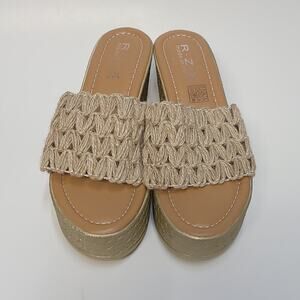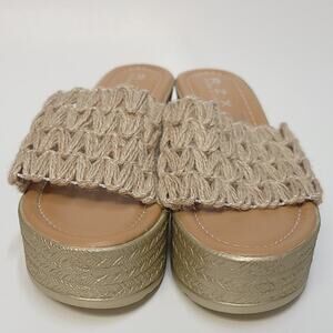 RZX Wedge Sandal Size 39 Boho Faux Espadrille Super Lightweight Summer Shoe Gold