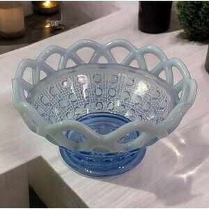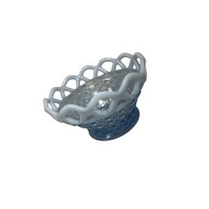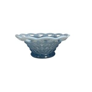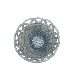 VTG Imperial Glass Basket Bowl Lacy Edge Blue Opalescent Trim Dish 1930's MCM