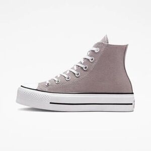 Elevate your look with these Converse high-tops. Light gray design for versatile style. Ideal for casual wear.