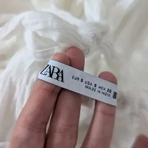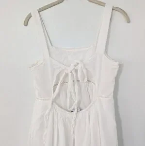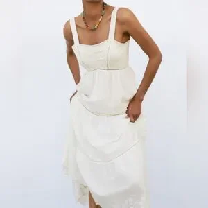 Zara Pintuck Tiered Midi Dress Tie Back Ladder Detail Beige Ecru Small S