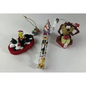 4 Looney Tunes Christmas Ornaments Taz Tweety Bugs Bunny Sylvester Holiday Sound