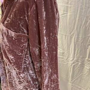 Luxurious velvet fabric. Soft pink hue. Classic button-down style. Perfect for elegant occasions.