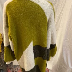 Elevate your wardrobe with this chic colorblock open cardigan. Featuring a stylish blend of olive, cream, and brown, it's perfect for layering over any outfit.