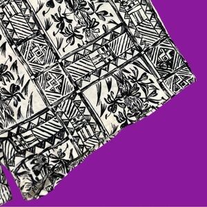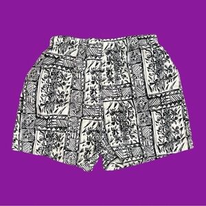 Black and white tropical block print swim shorts with mesh lining and drawstring waist. Lightweight and perfect for summer wear.