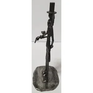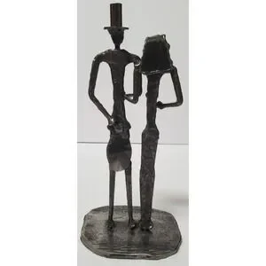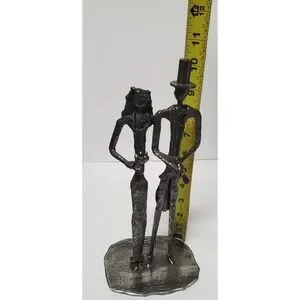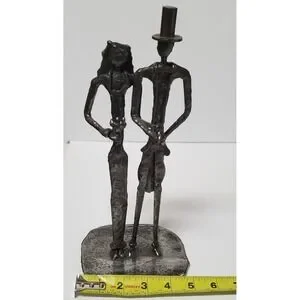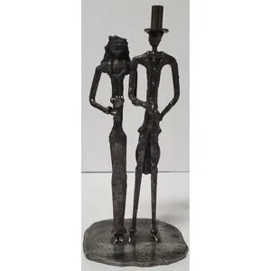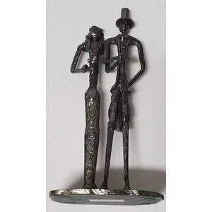 The McPhail Wedding Sculpture Scotland is a beautifully crafted metal sculpture of a bride and groom standing in a top hat, arm in arm. Made in the United Kingdom, this pewter toned silver piece is a perfect gift for any special occasion, especially weddings. The McPhail Collection specializes in creating unique and elegant sculptures, making this a truly special decorative collectible for any couple at their wedding day.