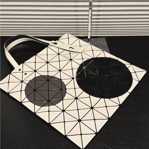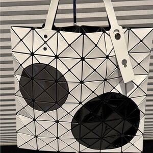 ISSEY Miyake, tote, adjustable handles, made of pvc & nylon, colors are white, black & gray, made in Japan, pocket inside, never used, tag still on.