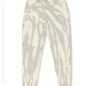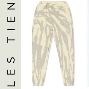 NWT Les Tien Tie Dyed Classic Sweatpants, yellow and gray tie dyed color way, unisex sizing, 100%cotton, terry lined, made in 🇺🇸, smoke free home, still in packaging