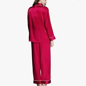 Red silk satin pajamas with white piping. Brand new. Great for Christmas, valentine's, matching family pjs