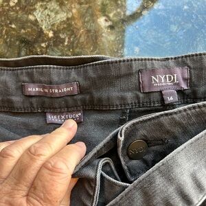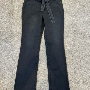 NYDJ Marilyn Straight tie waist trouser style black/grey jeans. Stretch. Work.